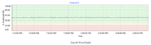 L’amplitude régulière du signal indique la cohérence de la densité du milieu et des solides qui traversent la ligne.